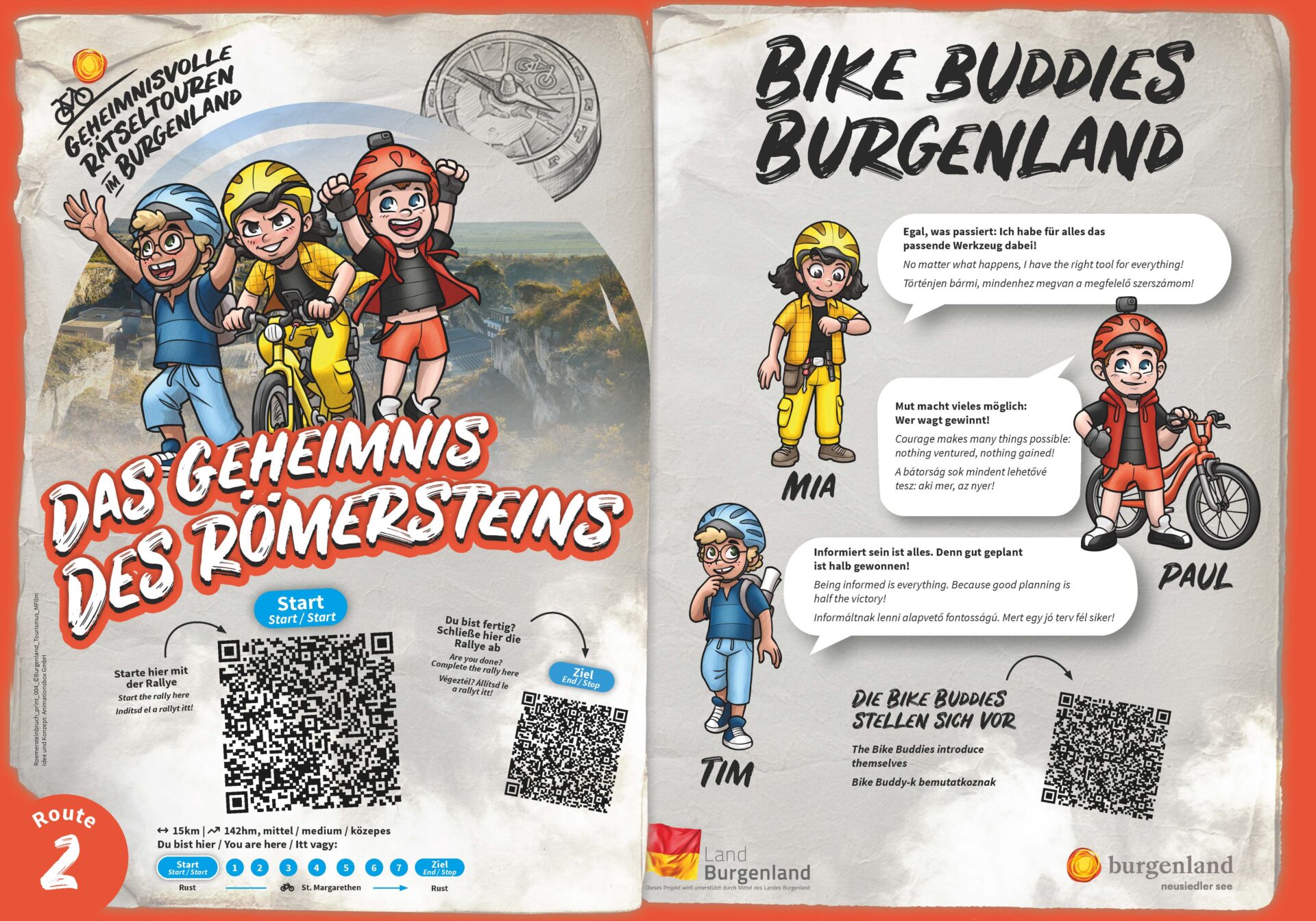 Mia, Tim und Paul – die Bike Buddies Burgenland – brauchen eure Hilfe, denn rund um den Neusiedler See passieren mysteriöse Dinge. Nur wenn ihr gemeinsam alle Rätsel löst, könnt ihr das große Geheimnis lüften.